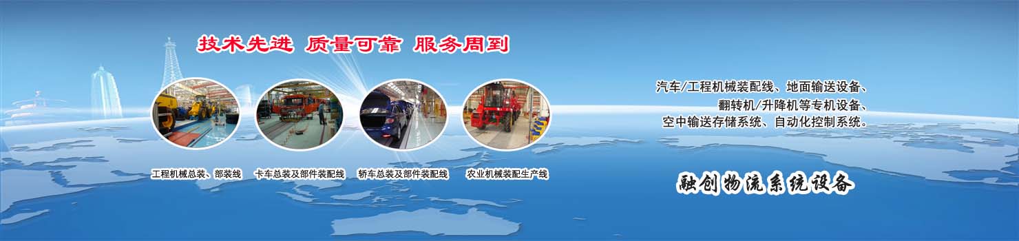 無錫市融創(chuàng)物流系統(tǒng)設(shè)備有限公司專業(yè)從事物流輸送設(shè)備、各類裝配流水線設(shè)備、各類生產(chǎn)非標專機設(shè)備和自動化控制系統(tǒng)的專業(yè)生產(chǎn)企業(yè)。廣泛應用于轎車、卡車、客車、各類工程機械、發(fā)動機、車橋、農(nóng)業(yè)機械、郵政、家電等行業(yè) ...... >> more >>